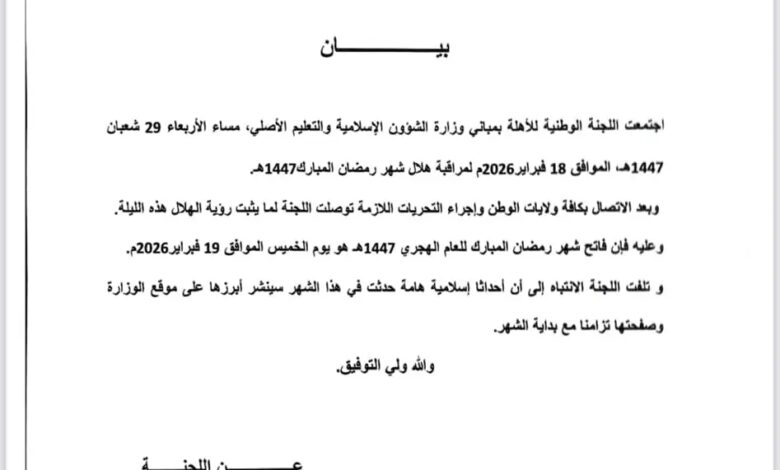 رسميا اللجنة الوطنية للأهلة تصدر بيانها بثبوت الرؤية وغدا الخميس فاتح شهر رمضان المبارك